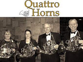 The Quattro Horns Quartet was formed in 1995 by H. Robert Dittmer and Joe Hill and focuses on performing an extensive variety of musical styles in fun and entertaining settings such as corporate and educational events, weddings, church services and senior concerts.  The members of Quattro Horns are all musically trained and educated.  In addition to the quartet, the members have extensive experience performing in various music ensembles, composing and arranging quartet music, lecturing on disease and creativity, teaching private lessons and leading musical organizations.